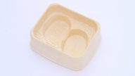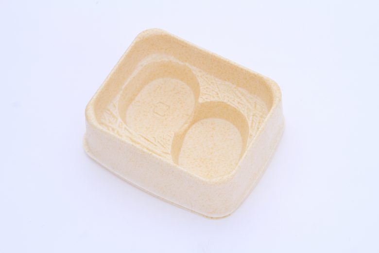不織布と汎用樹脂を組み合わせた容器で鳥の巣の様なイメージを再現、色合いも工夫し実物のような成形品にした。